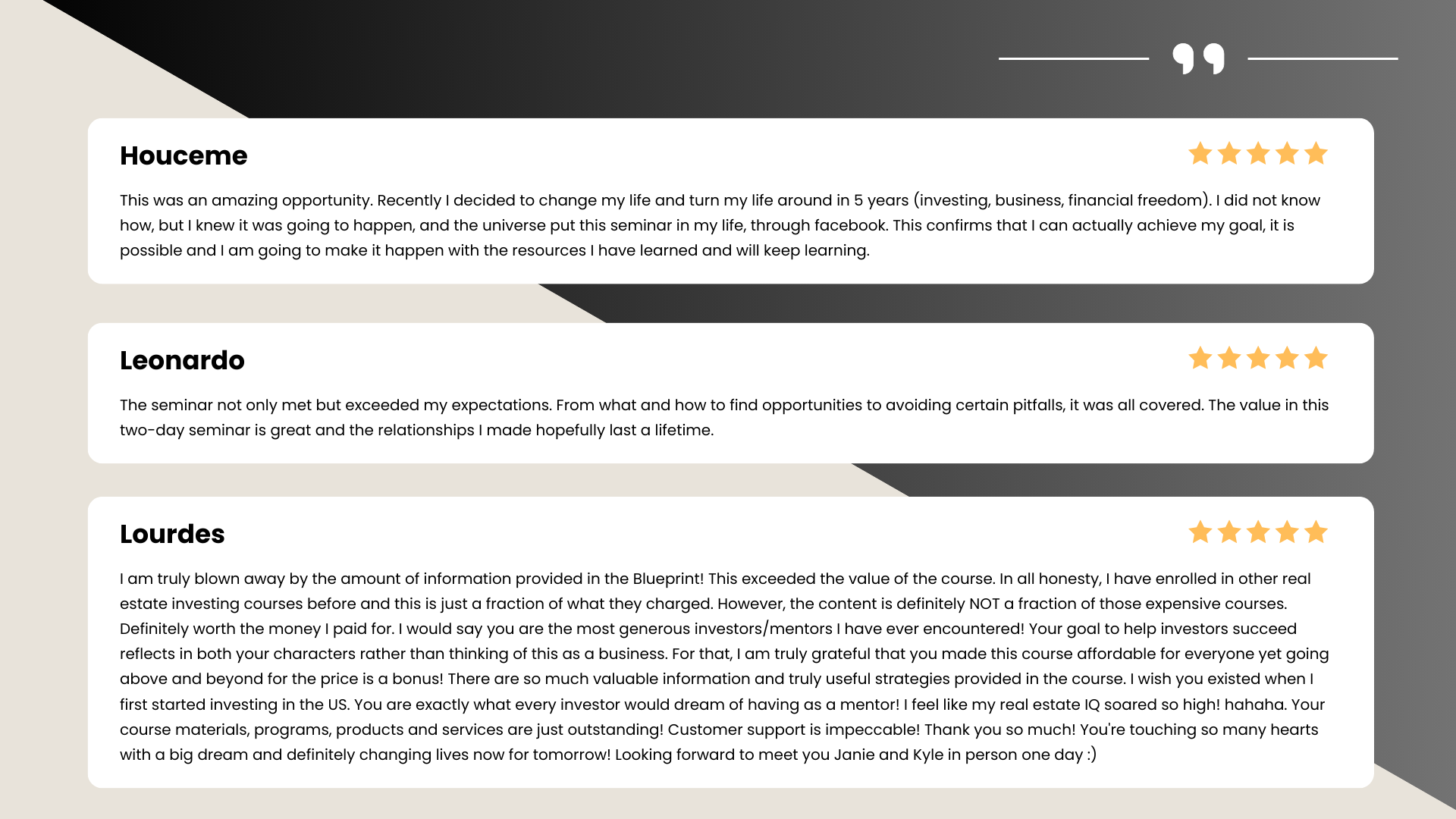 ''No fluff. No overwhelm. Just the exact strategies our students use to close deals and build wealth.''